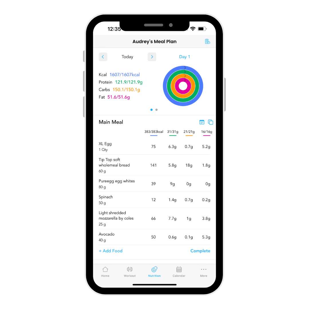 View your tailored meal plans, with the ability to modify your food diary as needed.